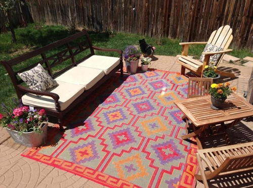 Outdoor rugs can add a pop of colour to your deck or patio. You can get very creative by adding one of these large rugs. By using one of these large rugs, you’re really creating an outdoor room.